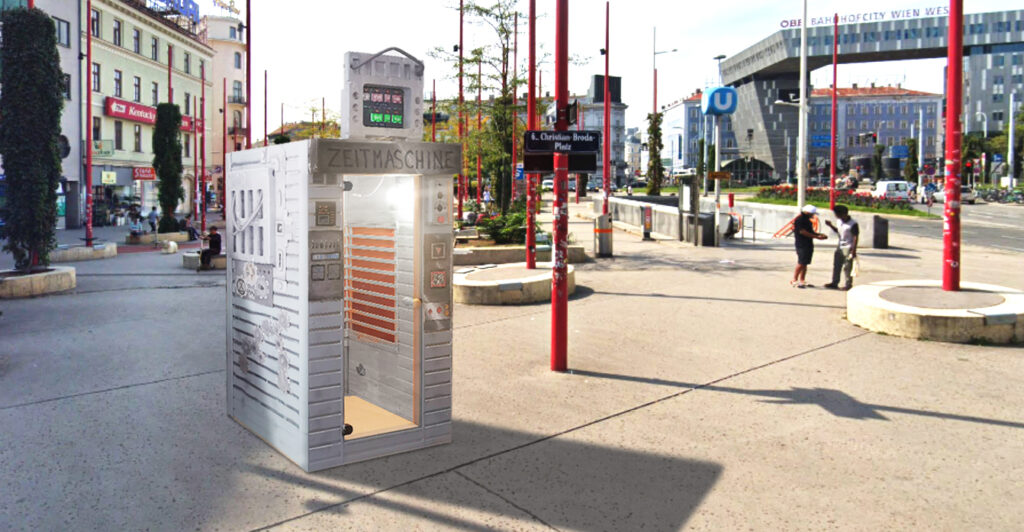 Dafür wird eine Klimakammer als „Zeitreisemaschine“ aufgestellt, die die in Wien zu erwartenden Temperaturen in naher und ferner Zukunft simuliert. Außerdem stellt das “Our Earths”-Projekt (in Kooperation mit der Boku Wien und Ars Electronica) einen VR-Film bereit, in dem man die negativen Auswirkungen der Erderhitzung auch visuell wahrnehmen kann.